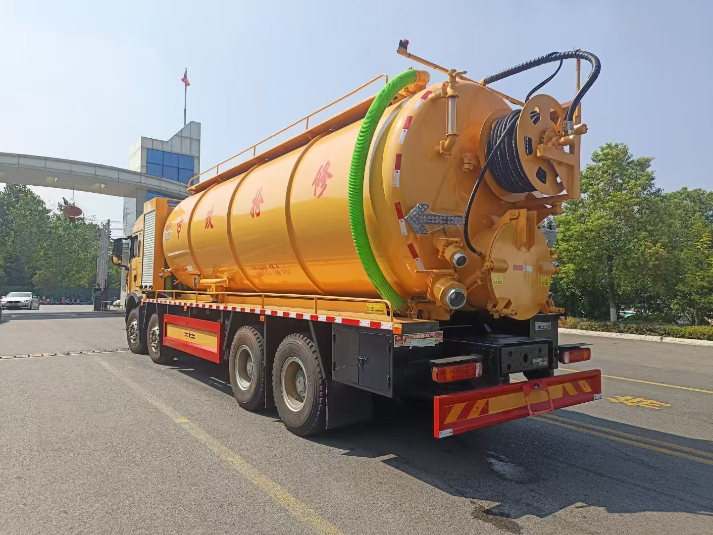 | 上裝配置 | 罐體總?cè)莘e約33立方,清水箱約10立方,其余為污水罐,加強(qiáng)大架,兩倉互通,采用8mm碳鋼制作,吸污部分,副發(fā)采用420馬力配258水循環(huán)泵,8米吸污管,罐體兩側(cè)加寬平臺(tái)加護(hù)欄,后部開一個(gè)600mm液壓開啟排污口,一個(gè)150排污球閥,和一個(gè)100的排污球閥,100內(nèi)抽球閥,后部左右各一個(gè)箭頭燈,配品浮350流量,配100米內(nèi)徑25定制耐磨高壓管,帶卷盤,卷盤液壓左右旋轉(zhuǎn)。 | ||