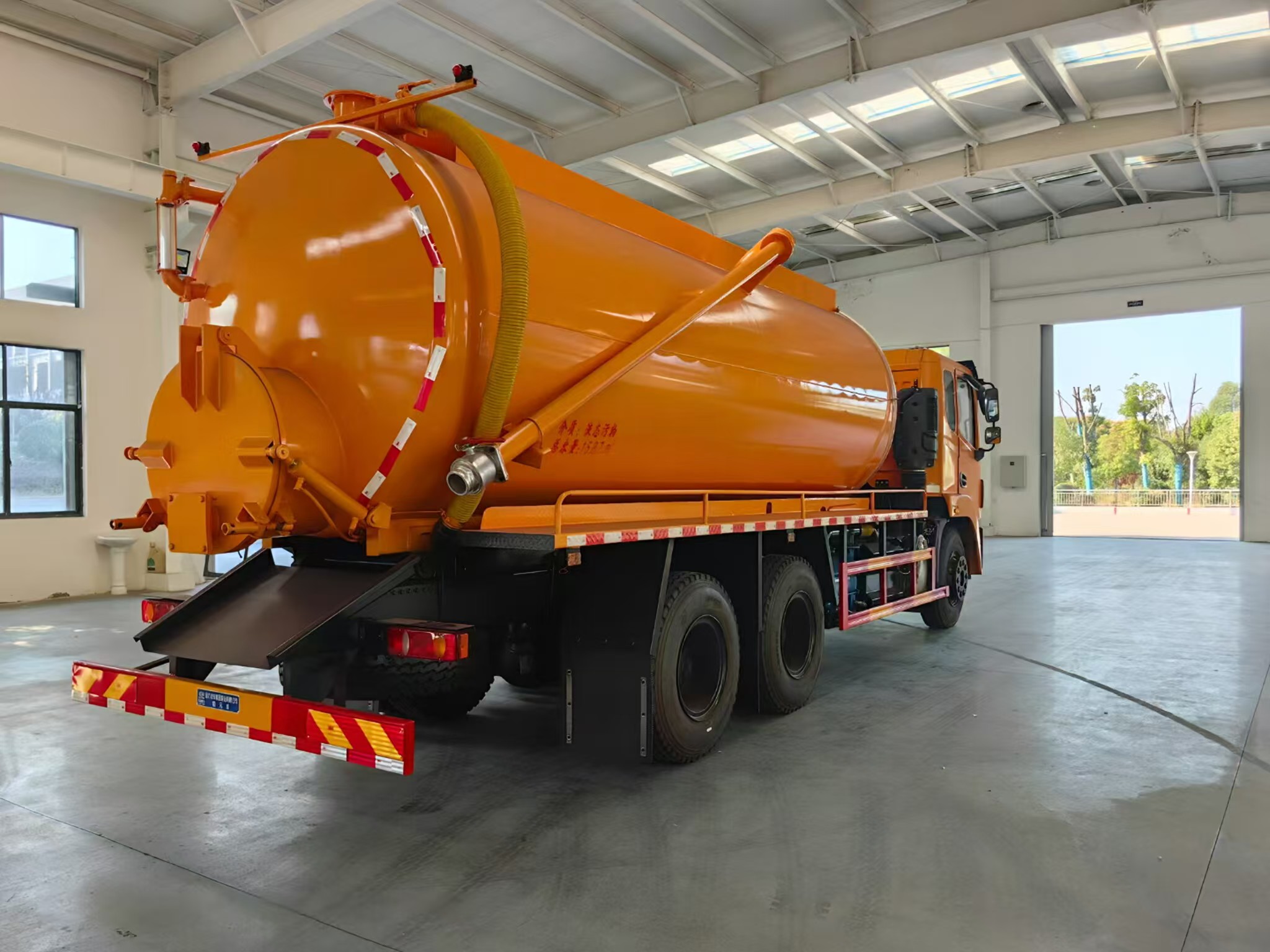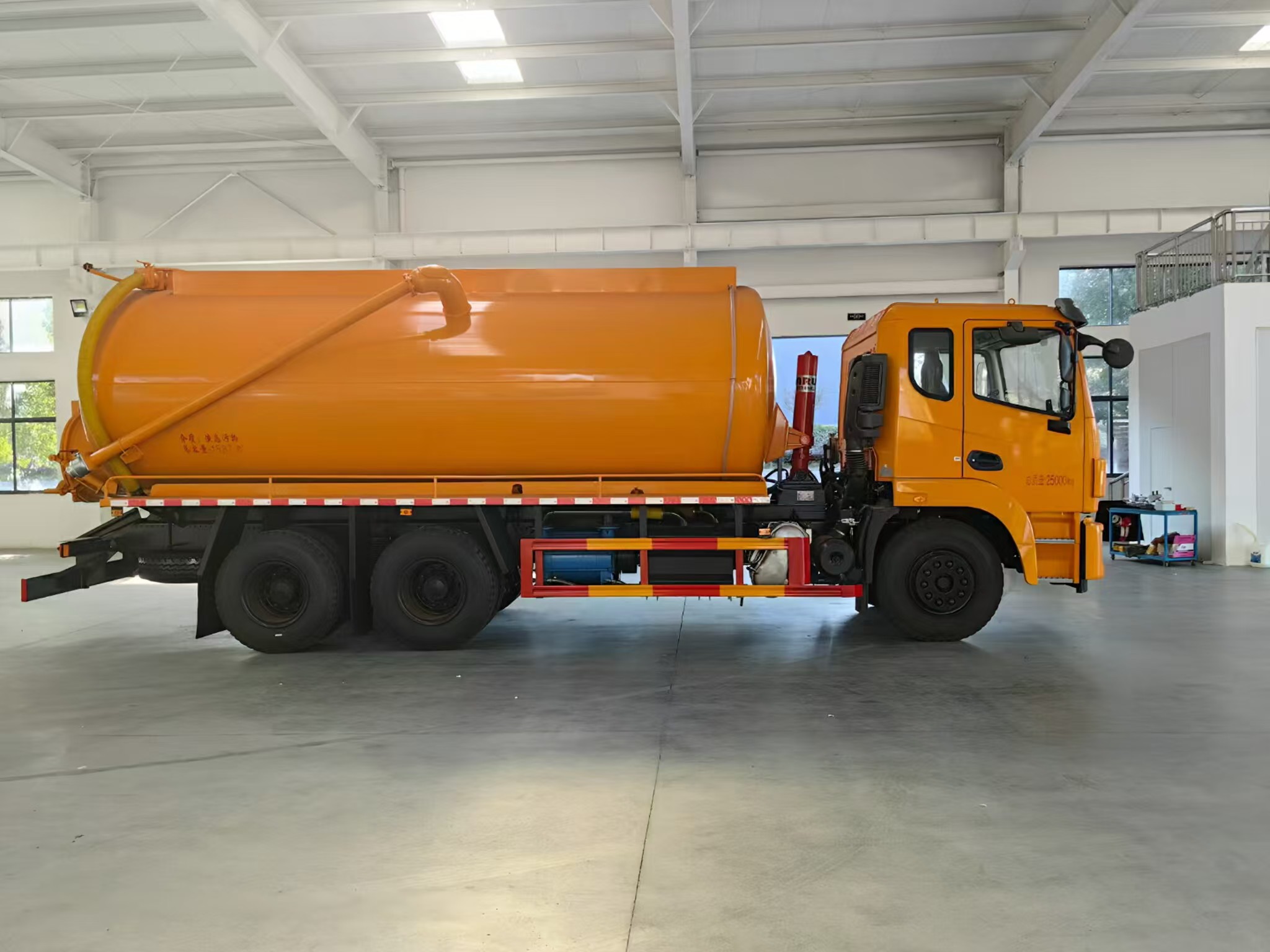 上裝配置 罐體容積約20方,8m碳鋼板材,選裝安裝山東204水環(huán)泵配,后封頭液壓打開。后封頭上一個800水泥蓋放污,可液壓開啟,后封頭一個6寸出口,一個100寸進口直通罐頂,加強型車架,自卸車設計,罐體帶舉升功能(前頂自卸),罐體尾部箭頭燈,帶一個視污窗口。帶8米吸污管。其余廠內標配!